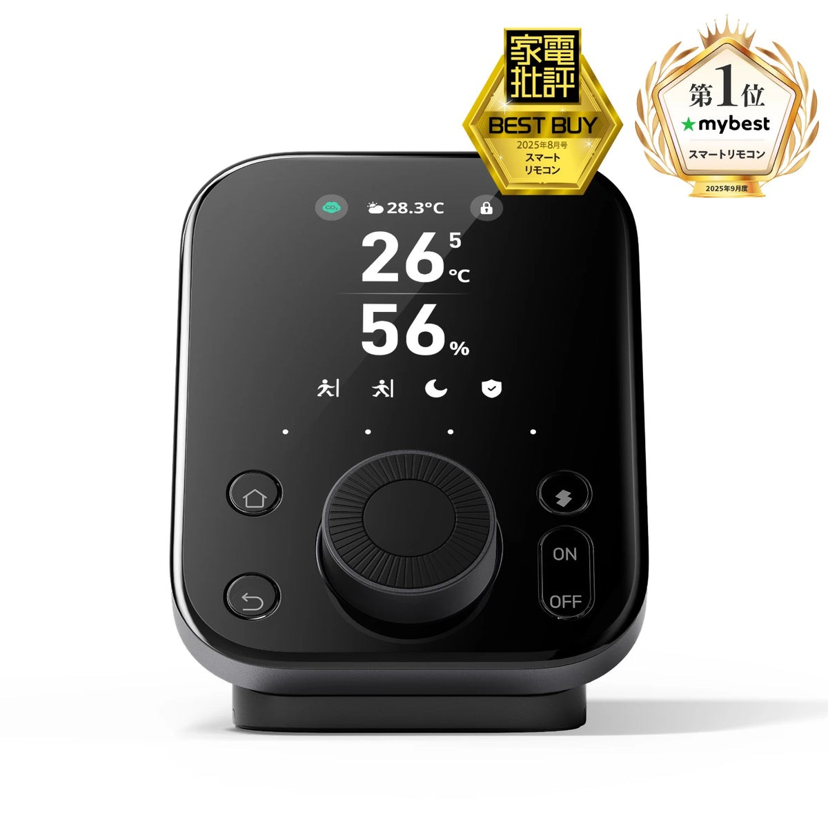 - 物理ダイヤルとボタンで直接操作可能。スマホを開かずにエアコンの温度調整や照明の調光ができる